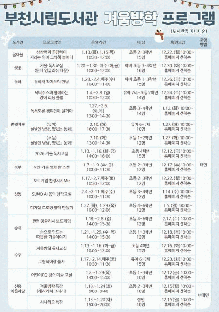 [»çȸ] ºÎõ½Ã¸³µµ¼­°ü, °Ü¿ï¹æÇÐ ¸Â¾Æ µ¶¼­¹®È­ ÇÁ·Î±×·¥ ¿î¿µ |2025. 12.30