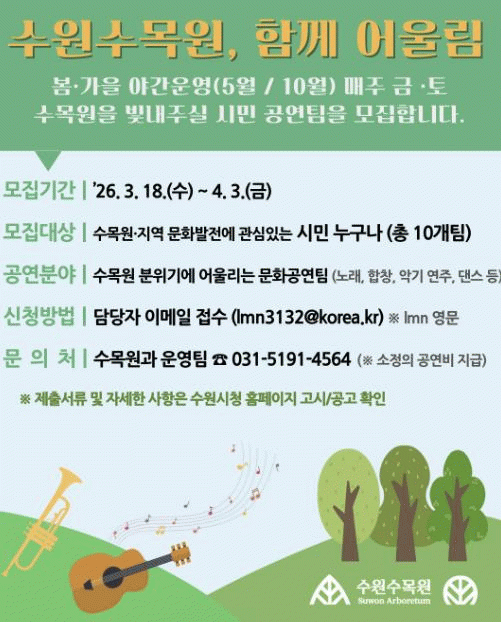 [»çȸ] ¼ö¿øÆ¯·Ê½Ã, '¼ö¿ø¼ö¸ñ¿ø, ÇÔ²² ¾î¿ï¸²' ½Ã¹Î Âü¿© °ø¿¬ÆÀ ¸ðÁý |2026. 03.18