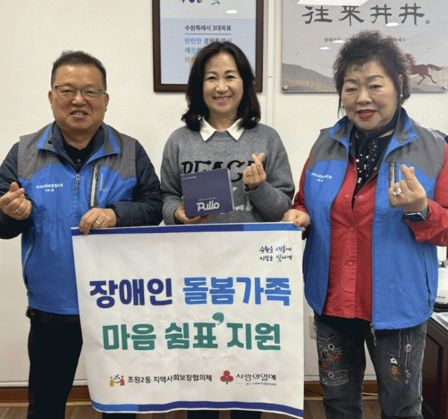 [NWS¹æ¼Û=Çѽ¸ñ ±âÀÚ]¼ö¿ø½Ã Àå¾È±¸ Á¶¿ø2µ¿ Áö¿ª»çȸº¸ÀåÇùÀÇü´Â Áö³­ 31ÀÏ, °ü³» Àå¾ÖÀÎ µ¹º½°¡Á·À» Áö¿øÇϱâ À§ÇÑ Æ¯È­»ç¾÷ÀÎ ¡®¸¶À½ ½°Ç¥ Áö¿ø¡¯ »ç¾÷À» ÃßÁøÇß´Ù. ¡®¸¶À½ ½°Ç¥ Áö¿ø¡¯ »ç¾÷Àº ºÐ±âº°·Î Àå¾ÖÀÎ µ¹º½°¡Á· 3°¡Á¤À» ¼±¡¦