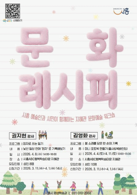 [»çȸ] ½ÃÈï½Ã, ÁöÇý°ü¼­ Áñ±â´Â ÀÏ»ó ¼Ó ¹®È­¿¹¼ú °æÇè '2026 ¹®È­·¹½ÃÇÇ' ¿î¿µ |2026. 03.18