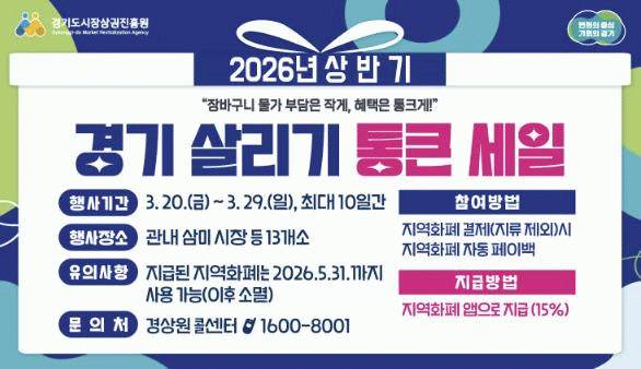 [NWS¹æ¼Û=Çѽ¸ñ ±âÀÚ]½ÃÈï½Ã´Â °í¹°°¡·Î À§ÃàµÈ ¹Î»ý°æÁ¦¿¡ Ȱ·ÂÀ» ºÒ¾î³Ö°í ¼Ò»ó°øÀÎÀÇ ¸ÅÃâ Áõ´ë¸¦ µ½±â À§ÇØ ¿À´Â 3¿ù 20ÀϺÎÅÍ 29ÀϱîÁö °ü³» Àü¿ª¿¡¼­ ¡®2026³â »ó¹Ý±â °æ±â »ì¸®±â ÅëÅ« ¼¼ÀÏ¡¯À» °³ÃÖÇÑ´Ù. ¿ÃÇØ Çà»ç´Â Âü¿© ±Ô¸ð¡¦