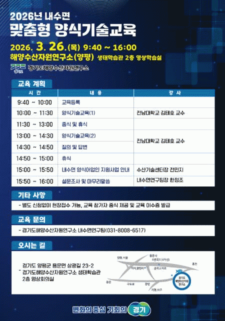 [»çȸ] °æ±âµµÇؾç¼ö»êÀÚ¿ø¿¬±¸¼Ò, ³»¼ö¸é ¾ç½Ä ¾î¾÷ÀÎ ½º¸¶Æ® ¼ö»ê¾ç½Ä ±â¼ú ±³À° ¿î¿µ |2026. 03.18