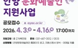 사회 =한승목 기자2026. 04.06[NWS방송=한승목 기자]안양문화예술재단은 지역 예술인의 창작활동을 지원하고 문화예술 진흥을 도모하기 위한 ‘2026년 안양 문화예술인 지원사업’ 희망자를 오는 16일 17시까지 공개 모집한다. 이번 공모는 안양에서 활동하는 예술인과 예술단체를 대상으로 하며, 안정적인 창작환경 조성과 더불어 경기도 내 우수 예술인의 안양 유입을 통해 시민들에게 보다 풍성한 문화예술 향유 기회를 제공하는 것을 목적으로 한다. 총 사업 규모는 3억 2,630만원이며, 이 중 지원금은 2억 7,400만원이다. 특히 올해는 ‘정산 간소화’ 제도를 시범...