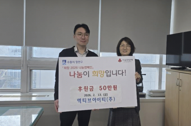 [NWS¹æ¼Û=Çѽ¸ñ ±âÀÚ]¼ö¿ø½Ã Àå¾È±¸¿¡ À§Ä¡ÇÑ ¿¢Æ¼ºê¾ÆÀÌÆ¼(ÁÖ)°¡ Áö³­ 13ÀÏ, ¼³ ¸íÀýÀ» ¸Â¾Æ ÈÄ¿ø±Ý 50¸¸¿øÀ» Àå¾È±¸Ã»¿¡ ±âºÎÇß´Ù. ¿¢Æ¼ºê¾ÆÀÌÆ¼(ÁÖ)´Â LGÀ¯Ç÷¯½ºÀÇ Àü±¹ 1À§ ±â¾÷ ÆÄÆ®³Ê»ç·Î Æò°¡¹Þ´Â Åë½Å Àü¹® ´ë¸®Á¡À¸·Î, ±â¾÷ ¡¦