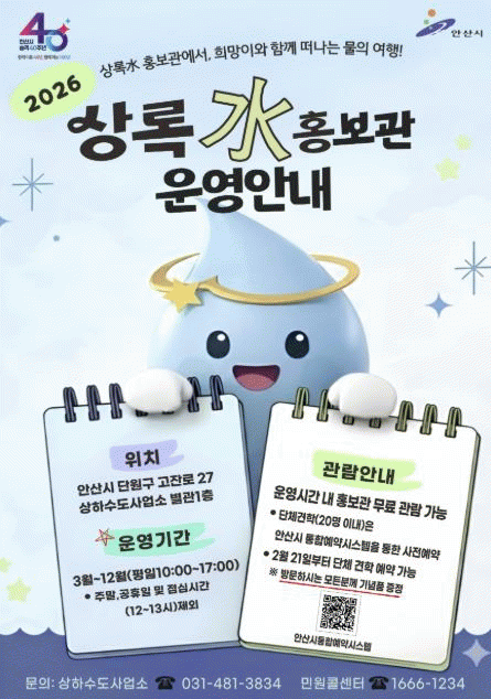 [»çȸ] ¾È»ê½Ã, »óÇϼöµµ»ç¾÷¼Ò »ó·Ïâ© È«º¸°ü 3¿ùºÎÅÍ ¿î¿µ Àç°³ |2026. 02.19