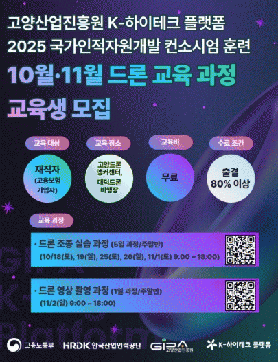 [°æÁ¦] °í¾ç»ê¾÷ÁøÈï¿ø K-ÇÏÀÌÅ×Å©Ç÷§Æû, µå·Ð¡¤»ý¼ºÇü AI ½Ç¹« ±³À° ÈÆ·Ã»ý ¸ðÁý |2025. 09.30