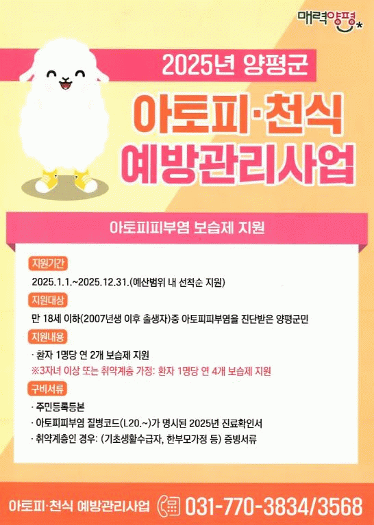 [NWS¹æ¼Û=Çѽ¸ñ ±âÀÚ]¾çÆò±ºÀº Áö¿ª»çȸ Áß½ÉÀÇ ¾Ë·¹¸£±âÁúȯ Á¶±â ¹ß°ß°ú ÀûÀýÇÑ Ä¡·á¸¦ À§ÇØ 2025³â ¿¬Áß ¡®¾ÆÅäÇÇ ÇǺο° º¸½ÀÁ¦ Áö¿ø¡¯°ú ¡®Ãë¾à°èÃþ ¾Ë·¹¸£±âÁúȯ ÀÇ·áºñ Áö¿ø¡¯À» ½Ç½ÃÇÑ´Ù°í ¹àÇû´Ù. ¡®¾ÆÅäÇÇ ÇǺο° º¸½ÀÁ¦ Áö¿ø¡¦