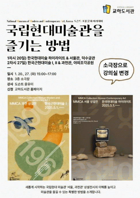 [NWS¹æ¼Û=Çѽ¸ñ ±âÀÚ]ÆÄÁֽà ±³Çϵµ¼­°üÀº ¿À´Â 20Àϰú 27ÀÏ, 15½ÃºÎÅÍ 17½Ã±îÁö ±³Çϵµ¼­°ü 3Ãþ ¼Ò±ØÀå¿¡¼­ Àü¹® ¾È³»¿ø(µµ½¼Æ®) ÃÊû °­¿¬ ÇÁ·Î±×·¥ ¡®±¹¸³Çö´ë¹Ì¼ú°üÀ» Áñ±â´Â ¹æ¹ý¡¯À» ¿î¿µÇÑ´Ù. À̹ø ÇÁ·Î±×·¥Àº ±¹¸³Çö´ë¹Ì¼ú°ü À±¡¦
