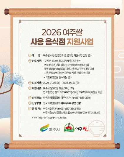 [»çȸ] ¿©ÁÖ½Ò »ç¿ë À½½ÄÁ¡ Áö¿ø »ç¾÷ ½Åû Á¢¼ö ½ÃÀÛ |2026. 01.06