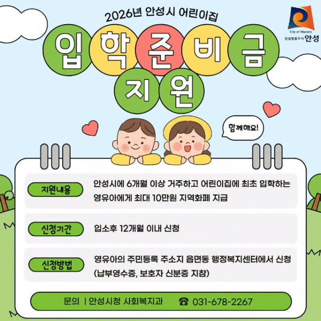 [»çȸ] ¾È¼º½Ã, 2026³â ¾î¸°ÀÌÁý ÀÔÇÐÁغñ±Ý Áö¿ø |2026. 01.16