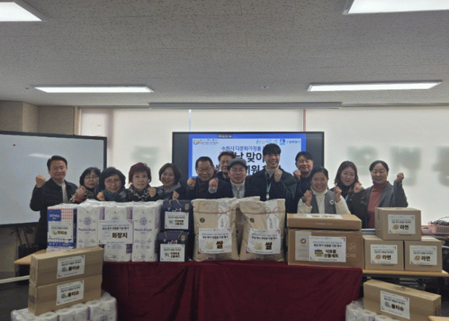 [NWS¹æ¼Û=Çѽ¸ñ ±âÀÚ]»ç´Ü¹ýÀÎ ¡®ÇູÇÑ Ä¯º¸µð¾Æ ¸¸µé±â ÈÄ¿øÈ¸¡¯°¡ ¡°Ãë¾à°èÃþ ÀÌ¿ô¿¡ Àü´ÞÇØ ´Þ¶ó¡±¸ç 5ÀÏ ¼ö¿ø½Ã¿¡ 400¸¸ ¿ø »ó´çÀÇ ¼³ ÈÄ¿ø¹°Ç°À» Àü´ÞÇß´Ù. ¼ö¿ø½Ã´Ù¹®È­°¡Á·Áö¿ø¼¾ÅÍ¿¡¼­ ¿­¸° Àü´Þ½Ä¿¡´Â È«¼ø¸ñ (»ç)Çູį ÀÌ¡¦