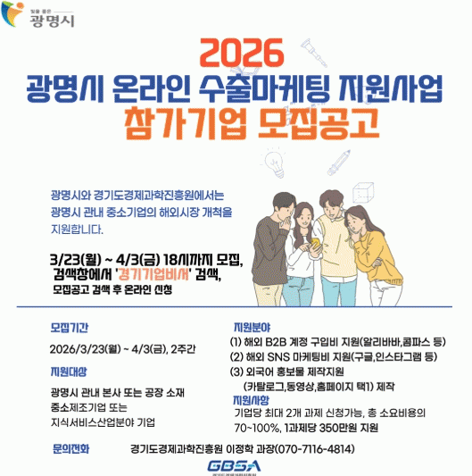 [°æÁ¦] ±¤¸í½Ã, °ü³» Áß¼Ò±â¾÷ ±Û·Î¹ú °æÀï·Â ³ôÀδ١¦ ÇØ¿Ü ÆÇ·Î °³Ã´ ¸ÂÃã Áö¿ø |2026. 03.24