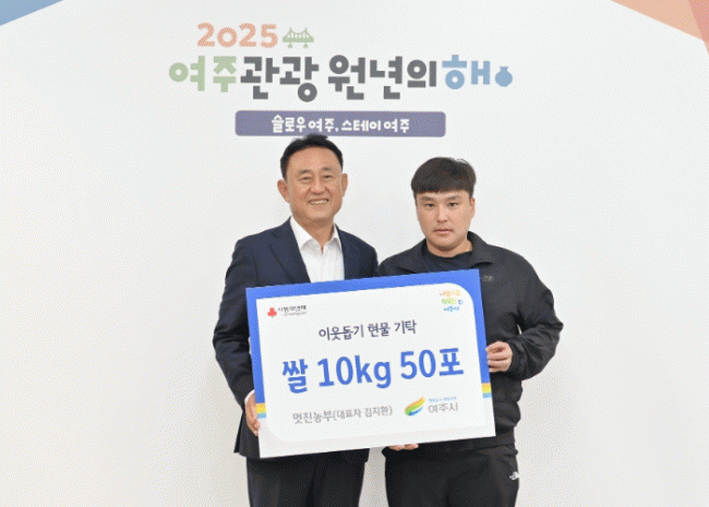 [NWS¹æ¼Û=Çѽ¸ñ ±âÀÚ]Áö³­ 11¿ù 4ÀÏ ¸ÚÁø³óºÎ ±èÁöȯ ´ëÇ¥´Â ¿©ÁÖ½ÃûÀ» ¹æ¹®ÇÏ¿© ÀÌ¿ôµ½±â Çö¹°(½Ò 10kg) 50Æ÷¸¦ ±âŹÇß´Ù. ±èÁöȯ ´ëÇ¥´Â ¸Å³â °¡À» ¼öÈ® ÈÄ ¿©ÁÖ½ÃÀÇ ¾î·Á¿î ÀÌ¿ôÀ» µ½±â À§ÇØ ±âŹÀ» À̾î¿À°í ÀÖÀ¸¸ç, ¿ÃÇØ¿¡µµ ³ª¡¦