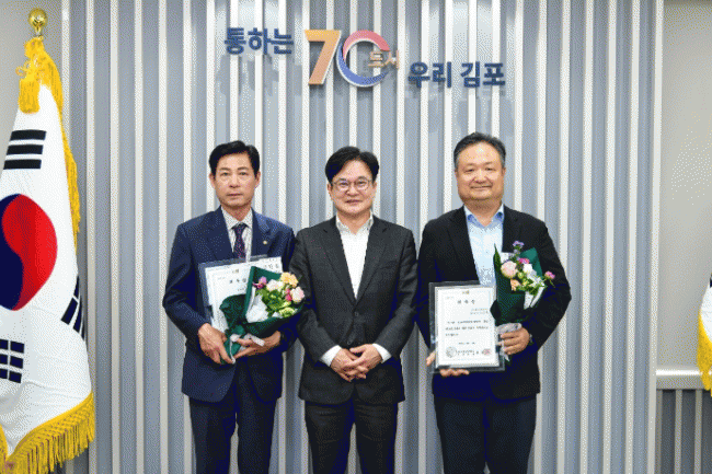 [NWS¹æ¼Û=Çѽ¸ñ ±âÀÚ]±èÆ÷½ÃÀå¾ÖÀÎüÀ°È¸´Â Áö³­ 20ÀÏ ±èÆ÷½Ãû ¼ÒÅë½Ç¿¡¼­ ½ÅÀÓ »óÀÓºÎȸÀå°ú ¼ö¼®ºÎȸÀå¿¡ ´ëÇÑ À§ÃËÀå ¼ö¿©½ÄÀ» ÁøÇàÇß´Ù. À̹ø À§ÃËÀ» ÅëÇØ ±èÀμ· ±èÆ÷ÁßÀåºñÀÚµ¿Â÷Á¤ºñÇпø ¿øÀåÀÌ »óÀÓºÎȸÀåÀ¸·Î, ¼­Àç¿­ ¢ß³²¾ç¡¦