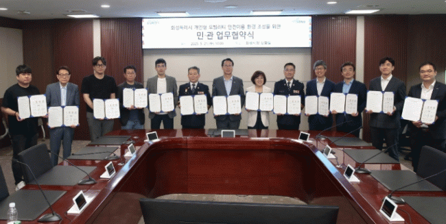 [NWS¹æ¼Û=Çѽ¸ñ ±âÀÚ]È­¼ºÆ¯·Ê½Ã°¡ 21ÀÏ Àüµ¿Å±º¸µå¿Í Àü±âÀÚÀü°Å µî °³ÀÎÇü ¸ðºô¸®Æ¼(PM)ÀÇ ¾ÈÀüÇÑ ÀÌ¿ë ȯ°æ Á¶¼ºÀ» À§ÇØ 13°³ ¹Î°ü±â°üÀÌ Âü¿©ÇÏ´Â ¾÷¹«Çù¾àÀ» ü°áÇß´Ù. À̳¯ ½Ãû »óȲ½Ç¿¡¼­ ¿­¸° Çù¾à½Ä¿¡´Â Á¤¸í±Ù È­¼ºÆ¯·Ê½ÃÀ塦