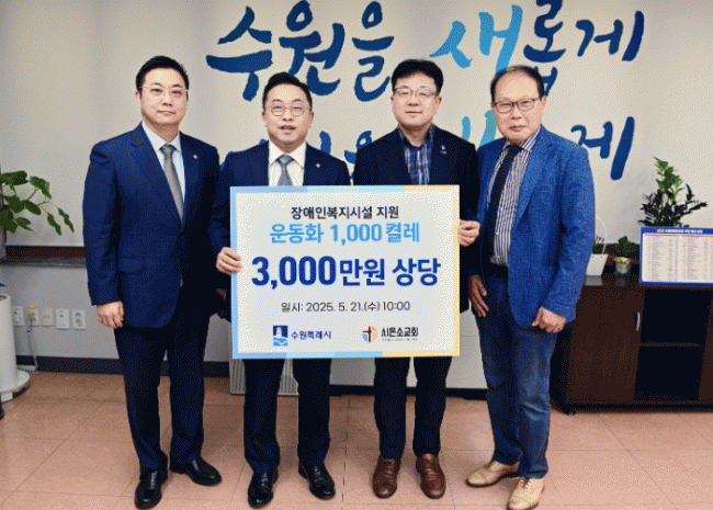 [NWS¹æ¼Û=Çѽ¸ñ ±âÀÚ]½ÃÀº¼Ò±³È¸(¼ö¿ø ¿µÅ뱸)°¡ 21ÀÏ ¼ö¿ø½Ã¿¡ ¿îµ¿È­ 1000ÄÓ·¹(3000¸¸¿ø »ó´ç)À» ±âºÎÇß´Ù. ¼ö¿ø½Ã´Â °ü³» Àå¾ÖÀκ¹Áö½Ã¼³ µî 12°³¼Ò¿¡ ½Å¹ßÀ» ¹èºÐÇÒ ¿¹Á¤ÀÌ´Ù. ¼ö¿ø½Ãû¿¡¼­ ¿­¸° Àü´Þ½Ä¿¡´Â ±èÇö¼ö ¼ö¿ø½Ã Á¦1ºÎ¡¦