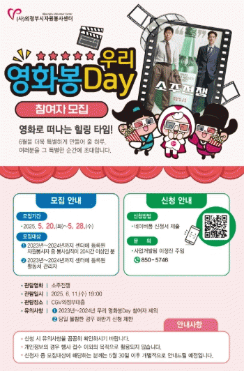 [»çȸ] ÀÇÁ¤ºÎ½ÃÀÚ¿øºÀ»ç¼¾ÅÍ, '2025³â ¿ì¸® ¿µÈ­ºÀDay' 1Â÷ Âü¿©ÀÚ ¸ðÁý |2025. 05.21