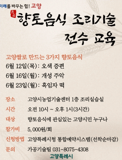 [»çȸ] °í¾ç½Ã³ó¾÷±â¼ú¼¾ÅÍ,¡®ÇâÅäÀ½½Ä Á¶¸®±â¼ú Àü¼ö ±³À°¡¯ Âü°¡ÀÚ ¸ðÁý |2025. 05.21