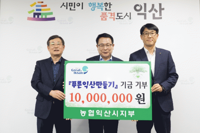 [NWS¹æ¼Û=Çѽ¸ñ ±âÀÚ] ÀÍ»ê½Ã´Â '³óÇùÀÍ»ê½ÃÁöºÎ'°¡ ³ì»öÁ¤¿øµµ½Ã Á¶¼º¿¡ µ¿ÂüÇϰíÀÚ ¼º±Ý 1,000¸¸ ¿øÀ» ±âºÎÇß´Ù°í 21ÀÏ ¹àÇû´Ù. À̳¯ Àü´ÞµÈ ¼º±ÝÀº ©ÅǪ¸¥Àͻ갡²Ù±â ¿îµ¿º»ºÎ¿¡ ±âŹµÈ ÈÄ, ³ì»öµµ½Ã Á¶¼ºÀ» À§ÇÑ ³ª¹«½É±â¿¡ Ȱ¿ëµÉ¡¦