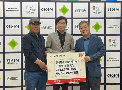 [NWS¹æ¼Û=Çѽ¸ñ ±âÀÚ]°æ»ê¹¦¸ñ¿µ³óÁ¶ÇÕ¹ýÀÎÀº 21ÀÏ °æ»ê½ÃûÀ» ¹æ¹®ÇÏ¿© °æºÏÁö¿ª¿¡¼­ ¹ß»ýÇÑ ´ëÇü »êºÒ·Î ÇÇÇØ¸¦ ÀÔÀº Áö¿ª ÁֹεéÀ» µ½±â À§ÇØ ¸ð±ÝÇÑ ¼º±Ý 1,265¸¸¿øÀ» ±âŹÇß´Ù. Á¤ÈñÁø °æ»ê¹¦¸ñÁ¶ÇÕ Á¶ÇÕÀåÀº ¡°À̹ø »êºÒ·Î »îÀÇ ¡¦