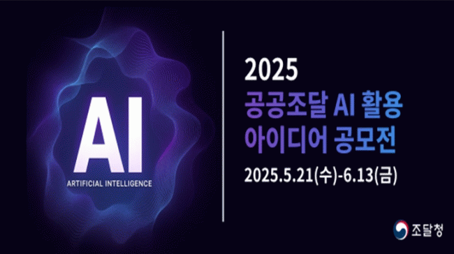 [NWS¹æ¼Û=Çѽ¸ñ ±âÀÚ]Á¶´ÞûÀº °ø°øÁ¶´Þ ºÐ¾ß¿¡ ÀΰøÁö´É(AI)À» Ȱ¿ëÇÏ¿© Á¶´Þ ¾÷¹«³ª ÀÏÇÏ´Â ¹æ½ÄÀ» °³¼±ÇÒ ¼ö ÀÖ´Â ¾ÆÀ̵ð¾î¸¦ ¹ß±¼Çϱâ À§ÇØ ¡®2025 °ø°øÁ¶´Þ AI Ȱ¿ë ¾ÆÀ̵ð¾î °ø¸ðÀü¡¯À» °³ÃÖÇÑ´Ù. ¾ÆÀ̵ð¾î °ø¸ð´Â 5¿ù 21ÀϺÎÅÍ¡¦