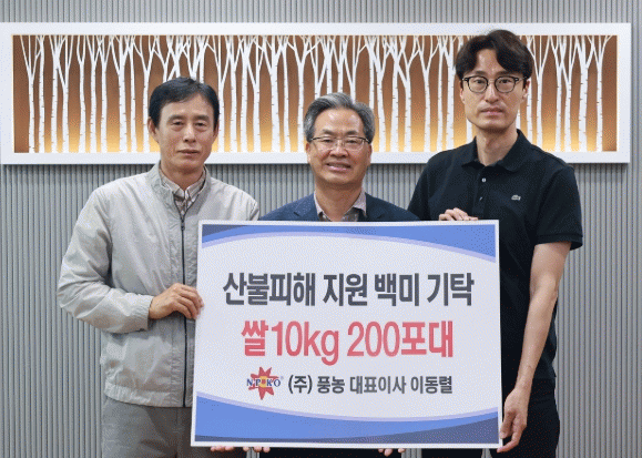 [NWS¹æ¼Û=Çѽ¸ñ ±âÀÚ]¢ßdz³óÀÌ ´ëÇü »êºÒ·Î Å« ÇÇÇØ¸¦ ÀÔÀº °æºÏ ¿µ¾ç±º ÀÌÀç¹ÎµéÀ» µ½±â À§ÇØ 5¿ù 20ÀÏ ¹é¹Ì 10kg 200Æ÷´ë¸¦ ±âºÎÇß´Ù. 1962³â ⸳ÇÑ ¢ßdz³óÀº ³ó¾÷ÀÎÀ» À§ÇÑ Ä£È¯°æ °íÈ¿À² ºñ·á¸¦ Á¦Á¶Çؿ ±â¾÷À¸·Î, ǰÁú°ú »ç¿ë ¡¦