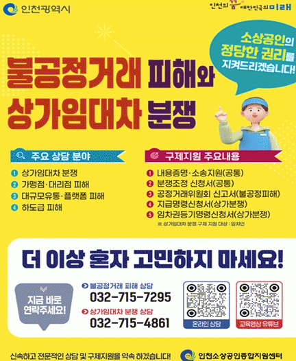 [NWS¹æ¼Û=ÇãÀº¼­ ±âÀÚ]ÀÎõ±¤¿ª½Ã´Â 2019³â 1¿ùºÎÅÍ 2025³â 4¿ù±îÁö ¡®ÀÎõ¼Ò»ó°øÀÎÁ¾ÇÕÁö¿ø¼¾ÅÍ¡¯¸¦ ÅëÇØ ºÒ°øÁ¤°Å·¡ ÇÇÇØ »ó´ã 1,022°Ç, »ó°¡ÀÓ´ëÂ÷ °ü·Ã »ó´ãÀº 3,870°Ç µî ÃÑ 4,892°ÇÀÇ ¹«·á ¹ý·ü»ó´ãÀ» ÁøÇàÇß´Ù°í ¹àÇû´Ù. ºÒ°øÁ¤°Å¡¦