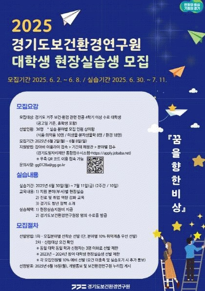 [»çȸ] °æ±âµµº¸°Çȯ°æ¿¬±¸¿ø, ¿©¸§¹æÇÐ ÇöÀå½Ç½À ÇÁ·Î±×·¥ Âü¿© À̰ø°è ´ëÇлý ¸ðÁý |2025. 05.21