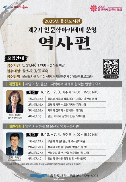 [»çȸ] ¿ï»êµµ¼­°ü,¡®2025³â Á¦2±â Àι®ÇÐ ¾ÆÄ«µ¥¹Ì¡¯¿î¿µ |2025. 05.21