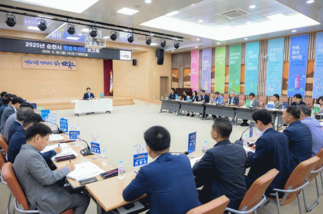 [NWS¹æ¼Û=Çѽ¸ñ ±âÀÚ]¼øÃµ½Ã´Â 20ÀÏ ½Ãû ´ëȸÀǽǿ¡¼­ ¡®Ã»·Å ÃßÁø´Ü¡¯ º¸°íȸ¸¦ ¿­°í 2025³â Á¾ÇÕû·Åµµ 1µî±Þ ´Þ¼ºÀ» À§ÇÑ 26°³ ¹ÝºÎÆÐ¡¤Ã»·Å ½ÃÃ¥À» °øÀ¯Çß´Ù. À̹ø º¸°íȸ¿¡¼­´Â ºÎÆÐ Ãë¾à ºÐ¾ß °³¼±°ú û·Å ¹®È­ Á¤ÂøÀ» À§ÇÑ ºÎ¼­¡¦