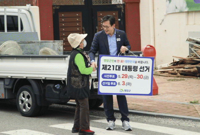 [NWS¹æ¼Û=Çѽ¸ñ ±âÀÚ]¿ì½ÂÈñ ¿µ¾Ï±º¼ö°¡ 19ÀÏ ¿µ¾ÏÀ¾ ¿µ¾Ï³óÇù»ç°Å¸®¿¡¼­ °Å¸®¸¦ ¿À°¡´Â ±º¹Îµé¿¡°Ô ¡®Á¦21´ë ´ëÅë·É¼±°Å¡¯ ÅõÇ¥ Âü¿© È«º¸¸¦ ½Ç½ÃÇß´Ù. À̹ø È«º¸´Â ÀÌÆ² ÀüÀÎ 16ÀÏ ¿µ¾Ï±ºÀÌ ±ºÃ»¿¡¼­ °³ÃÖÇÑ ´ëÅë·É¼±°Å ¼±°Å ÁøÇà»ó¡¦