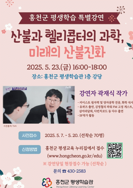 [NWS¹æ¼Û=Çѽ¸ñ ±âÀÚ]ȫõ±ºÀº ¿À´Â 5¿ù 23ÀÏ ¿ÀÈÄ 4½Ã, ȫõ±º Æò»ýÇнÀ°ü 1Ãþ °­´ç¿¡¼­ °ûÀç½Ä ÀÛ°¡¸¦ ÃÊûÇÏ¿© ¡®È«Ãµ±º Æò»ý ÇнÀ Ưº°°­¿¬¡¯À» °³ÃÖÇÑ´Ù. À̹ø Ưº°°­¿¬À» ÁøÇàÇÒ °ûÀç½Ä ÀÛ°¡´Â SF¼Ò¼³ ÀÛ°¡ÀÌÀÚ °úÇÐÀÚ·Î, À¯ÄûÁ