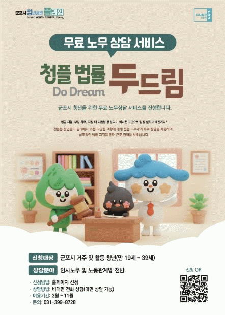 [NWS¹æ¼Û=Çѽ¸ñ ±âÀÚ]±ºÆ÷½Ã û³â°ø°£ ÇöóÀ×Àº °ü³» û³âµéÀÇ ³ëµ¿±Ç º¸È£¿Í ÀÏ»ó»ýȰ ¼Ó ¹ý·ü °íÃæ ÇØ°áÀ» À§ÇØ ¹«·á Àü¹® »ó´ã ¼­ºñ½ºÀÎ ¡®Ã»Çà ¹ý·ü µÎµå¸²(Do Dream)¡¯À» º»°Ý ¿î¿µÇÑ´Ù°í ¹àÇû´Ù. À̹ø »ç¾÷Àº ¹ý·ü Áö½Ä ºÎÁ·À¸·Î¡¦