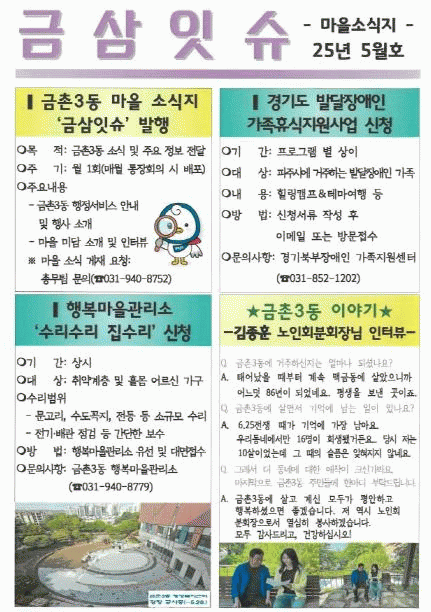 [NWS¹æ¼Û=Çѽ¸ñ ±âÀÚ]ÆÄÁֽà ±ÝÃÌ3µ¿Àº Áö¿ª ÁֹΰúÀÇ ¼ÒÅëÀ» °­È­Çϰí, ¸¶À» °øµ¿Ã¼ÀÇ °á¼Ó·ÂÀ» ³ôÀ̱â À§ÇÑ »õ·Î¿î ½Ãµµ·Î ¸¶À» ¼Ò½ÄÁö ¡®±Ý»ïÀÕ½´¡¯¸¦ â°£Çß´Ù. ù ¹ßÇàÀº 2025³â 5¿ùÀ̸ç, ÀÌÈÄ ¸Å¿ù 1ȸ Á¤±âÀûÀ¸·Î Á¦À۵Ǿî ÅëÀ塦