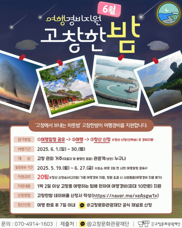 [»çȸ] °í⹮ȭ°ü±¤Àç´Ü, °íâ¿¡¼­ ÇÏ·í¹ã ¡®°íâÇѹ㡯 6¿ù ¿©ÇàÀÚ Áö¿ø ½ÃÀÛ! |2025. 05.19