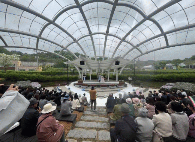 [NWS¹æ¼Û=Çѽ¸ñ ±âÀÚ] ÃæºÏ ¿µµ¿±º °úÀϳª¶óÅ׸¶°ø¿øÀÌ »õ·Î¿î ¹®È­°ø°£À¸·Î Å»¹Ù²ÞÇß´Ù. ÀÚ¿¬ÀÇ ½Ì±×·¯¿ò°ú °úÀÏÀÇ ´ÞÄÞÇÔÀÌ ¾î¿ì·¯Áø ÀÌ °ø¿ø¿¡¼­ ÀÌ´Þ 10ÀÏ ÇÑ ½ÖÀÇ ºÎºÎ°¡ Ưº°ÇÑ °áÈ¥½ÄÀ» ¿Ã¸®¸ç, »õ·Ó°Ô ´ÜÀåµÈ °ø°£ÀÇ Ã¹ ½ÃÀÛ¡¦