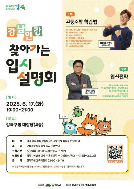 [NWS¹æ¼Û=Çѽ¸ñ ±âÀÚ]¼­¿ï °­ºÏ±¸´Â ¿À´Â 6¿ù 17ÀÏ ¿ÀÈÄ 7½ÃºÎÅÍ 9½Ã±îÁö °­ºÏ±¸Ã» ´ë°­´ç(4Ãþ)¿¡¼­ ¡®°­³²Àΰ­ ã¾Æ°¡´Â ÀԽü³¸íȸ¡¯¸¦ °³ÃÖÇÑ´Ù°í ¹àÇû´Ù. °­³²Àΰ­(°­³²±¸Ã» ÀÎÅͳݼö´É¹æ¼Û)Àº Àü±¹ Áß?°íµîÇлý ´ë»ó °ø°ø ±³À° Çá¦