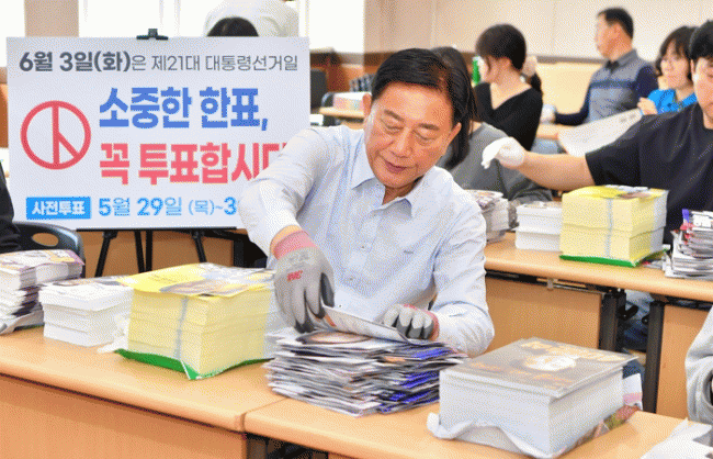 [NWS¹æ¼Û=Çѽ¸ñ ±âÀÚ]À强±ºÀÌ 18ÀÏ À强À¾, »ï¼­¡¤ºÏÇϸé ÇàÁ¤º¹Áö¼¾ÅÍ¿¡¼­ Á¦21´ë ´ëÅë·É¼±°Å Èĺ¸º° °ø¾àÀÌ ´ã±ä Ã¥ÀÚÇü °øº¸¹°ÀÇ ¿ìÆí¹ß¼Û Áغñ¸¦ ½ÃÀÛÇß´Ù. ´Ù¸¥ Áö¿ªÀº 19ÀϺÎÅÍ Áغñ ÀÛ¾÷¿¡ µé¾î°£´Ù. ÅõÇ¥¾È³»¹®ÀÌ Æ÷ÇÔµÈ Àü´ÜÇü¡¦