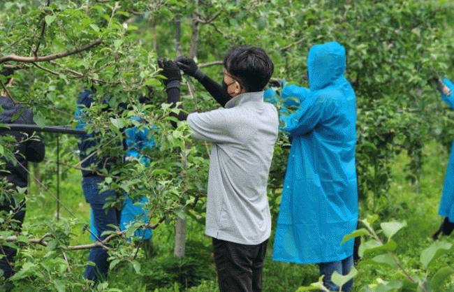 [NWS¹æ¼Û=Çѽ¸ñ ±âÀÚ]Æ÷Ç׽à ´ëº¯ÀνÇÀº 6ÀÏ ºÏ±¸ Á×Àå¸é¿¡ À§Ä¡ÇÑ »ç°ú Àç¹è ³ó°¡¸¦ ¹æ¹®ÇØ ¿µ³óö ³óÃÌ ÀÏ¼Õ µ½±â¸¦ Çß´Ù. À̳¯ Á÷¿øµéÀº »ç°ú³ª¹« ¿­¸Å ¼Ô±â µîÀÇ ÀÛ¾÷À» Çϸç ÀÏ¼Õ ºÎÁ·À¸·Î ¾î·Á¿òÀ» °Þ´Â ³ó°¡¿¡ ÈûÀ» º¸ÅÉ´Ù. Æ÷¡¦