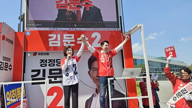 (NWS¹æ¼Û=´º½º¼¾ÅÍ)18ÀÏ ¿ÀÈÄ 2½Ã 21´ë ´ëÅë·ÉÈĺ¸ ±è¹®¼ö À¯¼¼ ±¸¸®½Ã ±¸¸®¿ª ±¤Àå¿¡¼­ ±¹¹ÎÀÇÈû ³ª°æ¿ø °øµ¿¼±´ëÀ§¿øÀåÀÇ À¯¼¼°¡ ÀÖ¾ú´Ù. ±¸¸®½Ã ±¹¹ÎÀÇÈû ´çÇùÀ§¿øÀå ³ªÅ±ÙÀÇ ¼±µÎ·Î ¿¬¼³À» ÇÏ°í ³ª°æ¿ø °øµ¿¼±´ëÀ§¿øÀåÀÌ ÇöÀå¿¡¡¦