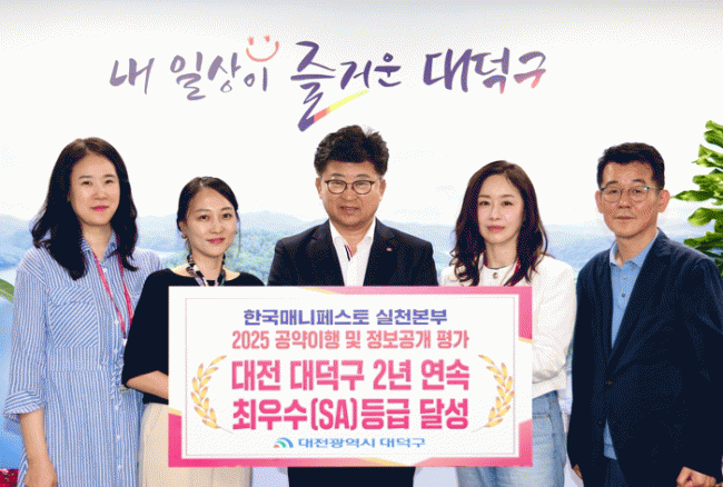 [»çȸ] ´ëÀü ´ë´ö±¸, ¸Å´ÏÆä½ºÅä °ø¾àÆò°¡ 2³â ¿¬¼Ó ÃÖ°íµî±Þ(SA) ´Þ¼º |2025. 05.18