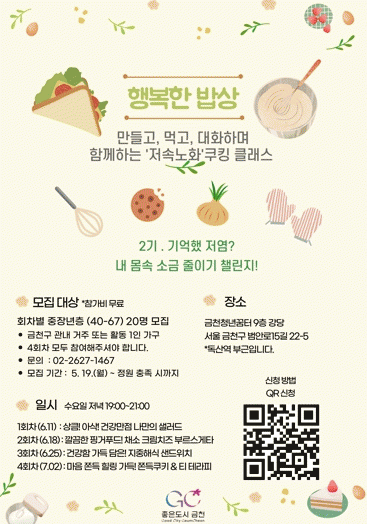 [NWS¹æ¼Û=Çѽ¸ñ ±âÀÚ]±Ýõ±¸´Â 19ÀϺÎÅÍ ÁßÀå³â(40~67¼¼) 1Àΰ¡±¸ ´ë»ó ¼Ò¼È´ÙÀÌ´× ÇÁ·Î±×·¥ ¡®ÇູÇÑ ¹ä»ó¡¯¿¡ Âü¿©ÇÒ »ç¶÷À» ¸ðÁýÇÑ´Ù°í ¹àÇû´Ù. ½Ä»ç¿Í °í¸³ µîÀÇ ¾î·Á¿òÀ» °Þ´Â ÁßÀå³â 1Àΰ¡±¸¸¦ À§ÇÑ ÇÁ·Î±×·¥ÀÌ´Ù. ÇÔ²² ¿ä¸®ÇÏ°í¡¦