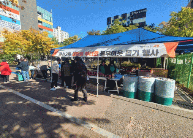 [NWS¹æ¼Û=Çѽ¸ñ ±âÀÚ]°í¾çƯ·Ê½Ã Àϻ굿±¸ Áß»ê2µ¿Àº Áö³­ 27ÀÏ, Áß»ê2µ¿ ÇàÁ¤º¹Áö¼¾ÅÍ ¿· °ø¿ø ±¤Àå¿¡¼­ ¡®ºÒ¿ì ÀÌ¿ôµ½±â »ç¶ûÀÇ ¹ÙÀÚȸ¡¯¸¦ °³ÃÖÇß´Ù. À̹ø ¹ÙÀÚȸ´Â ¾î·Á¿î ÀÌ¿ôÀ» µ½°í ³ª´®À» ½ÇõÇϱâ À§ÇØ ¸¶·ÃµÆÀ¸¸ç Áß»ê2µ¿ »õ¡¦