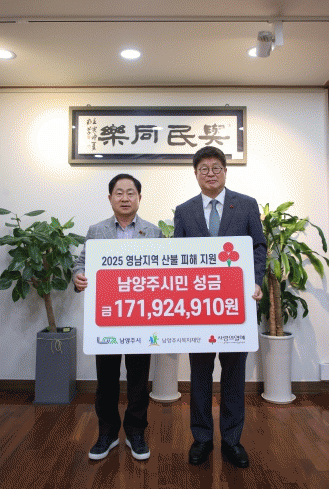 [NWS¹æ¼Û=Çѽ¸ñ ±âÀÚ]³²¾çÁÖ½Ã(½ÃÀå ÁÖ±¤´ö)´Â 16ÀÏ, ³²¾çÁֽú¹ÁöÀç´ÜÀÌ ¿µ³²Áö¿ª »êºÒ ÇÇÇØ ÁֹεéÀ» µ½±â À§ÇÑ ¼º±Ý 171,924,910¿øÀ» °æ±â »çȸº¹Áö°øµ¿¸ð±Ýȸ¿¡ Àü´ÞÇß´Ù°í ¹àÇû´Ù. À̹ø ±âºÎ±ÝÀº »êºÒ·Î ½Ã¹Î°ú ´Üü¡¤±â¾÷ÀÌ ¾î·Á¡¦