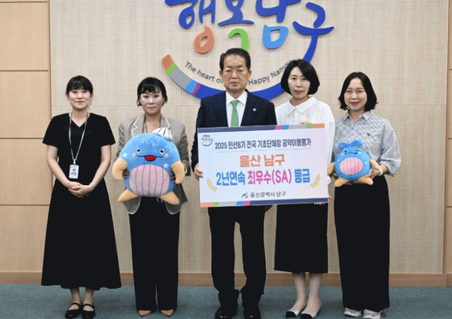 [NWS¹æ¼Û=Çѽ¸ñ ±âÀÚ] ¿ï»ê ³²±¸´Â Çѱ¹¸Å´ÏÆä½ºÅä½Çõº»ºÎ°¡ ÁÖ°üÇÑ¡®2025³â ¹Î¼± 8±â Àü±¹ ±âÃÊ´ÜüÀå °ø¾à ÀÌÇà ¹× Á¤º¸°ø°³ Æò°¡¡¯¿¡¼­ ÃÖ°íµî±ÞÀÎ SA(ÃÖ¿ì¼ö) µî±ÞÀ» ȹµæÇϸç, 2³â ¿¬¼Ó ÃÖ¿ì¼ö µî±Þ ´Þ¼ºÀ̶ó´Â Äè°Å¸¦ ÀÌ·ð´Ù°í 1¡¦