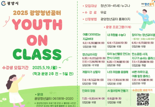[»çȸ] ±¤¾çû³â²ÞÅÍ, û³â ¸ÂÃãÇü ÀÚ±â°è¹ß ÇÁ·Î±×·¥ ¡®Youth On Class¡¯ ¼ö°­»ý ¸ðÁý |2025. 05.16