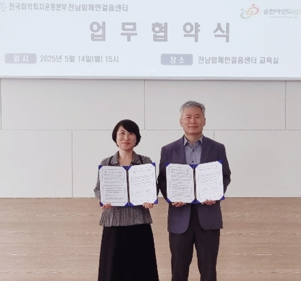 [NWS¹æ¼Û=Çѽ¸ñ ±âÀÚ]¼øÃµ½Ã´Â Áö³­ 14ÀÏ Çѱ¹¸¶¾àÅðÄ¡¿îµ¿º»ºÎ Àü³²ÇÔ²²ÇѰÉÀ½¼¾ÅÍ¿¡¼­ ¼øÃµÃ»³â¸¶À½°Ç°­¼¾ÅÍ¿Í Á¤½Å°Ç°­ À§±â Áö¿ª¹ÎµéÀÇ ÅëÇÕÁö¿øÀ» À§ÇÑ ¾÷¹«Çù¾àÀ» ü°áÇß´Ù°í ¹àÇû´Ù. À̹ø Çù¾àÀº û³â ¸¶¾à ¹®Á¦¿Í Á¤½Å°Ç°­ °í¡¦