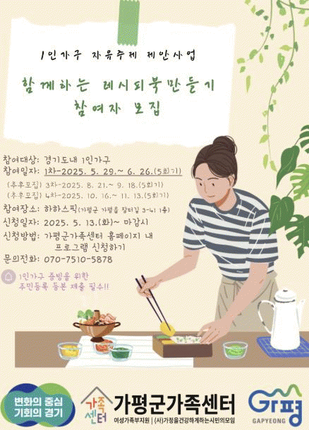 [»çȸ] °¡Æò±º, 1ÀÎ °¡±¸ ´ë»ó '¿ä¸® üÇè±³½Ç' ¿î¿µ |2025. 05.16