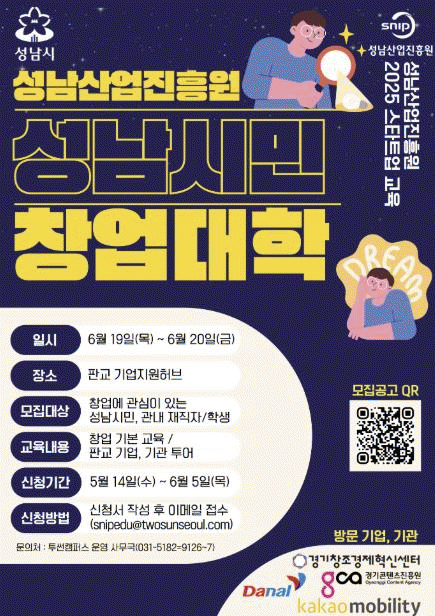 [NWS¹æ¼Û=Çѽ¸ñ ±âÀÚ]¼º³²»ê¾÷ÁøÈï¿øÀº ½Ã¹ÎµéÀÇ Ã¢¾÷¿¡ ´ëÇÑ ÀÌÇØ¿Í Âü¿©¸¦ È®´ëÇϱâ À§ÇØ ¡®½Ã¹Î â¾÷´ëÇС¯À» ½Ã¹ü ¿î¿µÇϸç, ¿À´Â 6¿ù 5ÀϱîÁö 1Â÷ Âü¿© ±³À°»ýÀ» ¸ðÁýÇÑ´Ù°í ¹àÇû´Ù. º» ÇÁ·Î±×·¥Àº â¾÷ ¾ÆÀ̵ð¾î °³¹ß µî ¿Â¶óÀÎ ¡¦