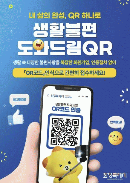 [NWS¹æ¼Û=Çѽ¸ñ ±âÀÚ]È­¼ºÆ¯·Ê½Ã´Â ½Ã¹Î ´©±¸³ª QRÄÚµå Çϳª·Î ÀÏ»ó ¼Ó ºÒÆí»çÇ×À» °£ÆíÇÏ°Ô Á¢¼öÇÒ ¼ö ÀÖ´Â ¡®»ýȰºÒÆí µµ¿Íµå¸² QR¡¯»ç¾÷À» º»°Ý ÃßÁøÇÑ´Ù°í 16ÀÏ ¹àÇû´Ù. 2001³â ½Ã ½Â°Ý ´ç½Ã Àα¸ 21¸¸ ¸íÀÌ´ø È­¼º½Ã´Â 20¿© ³â ¸¸¡¦